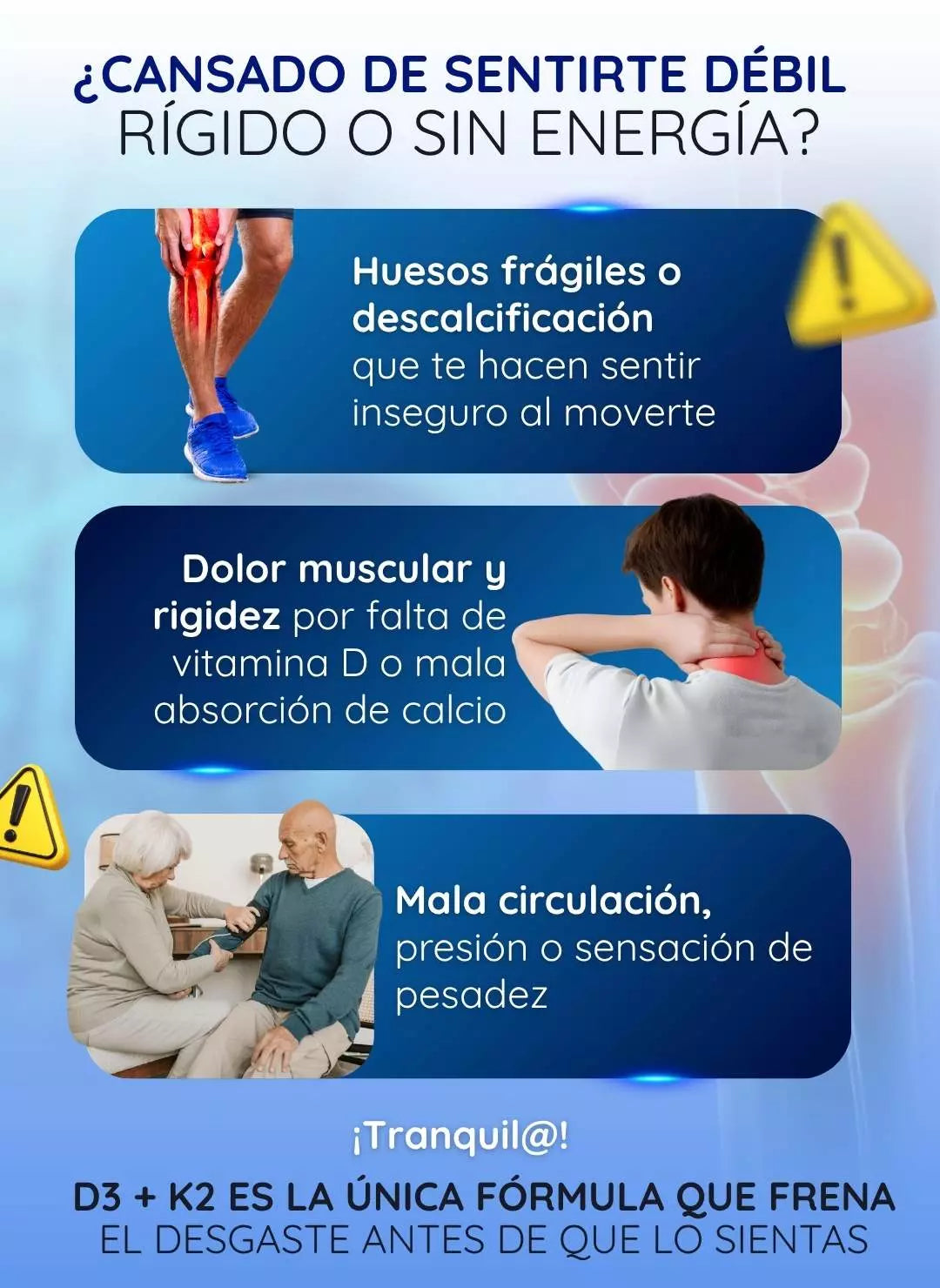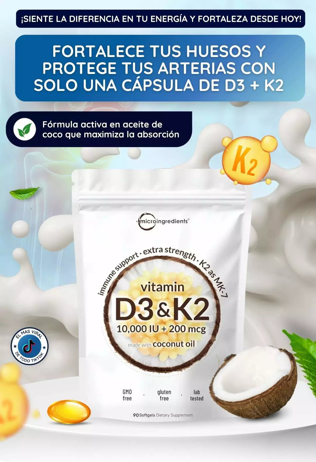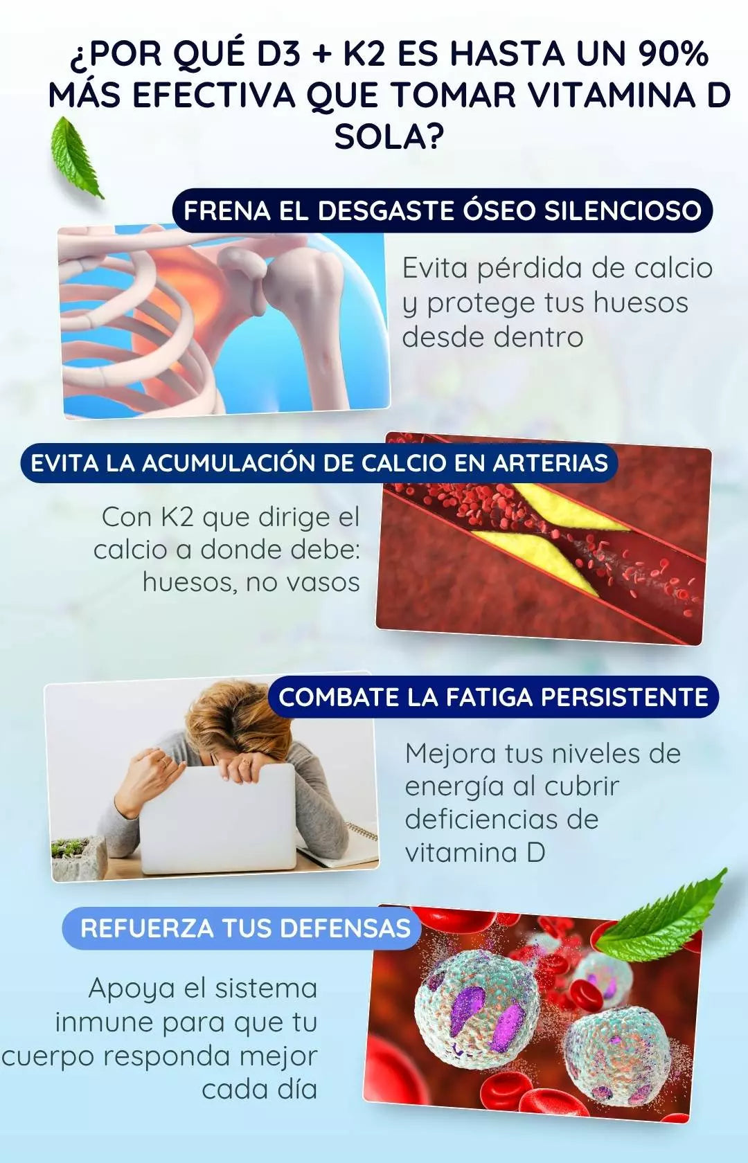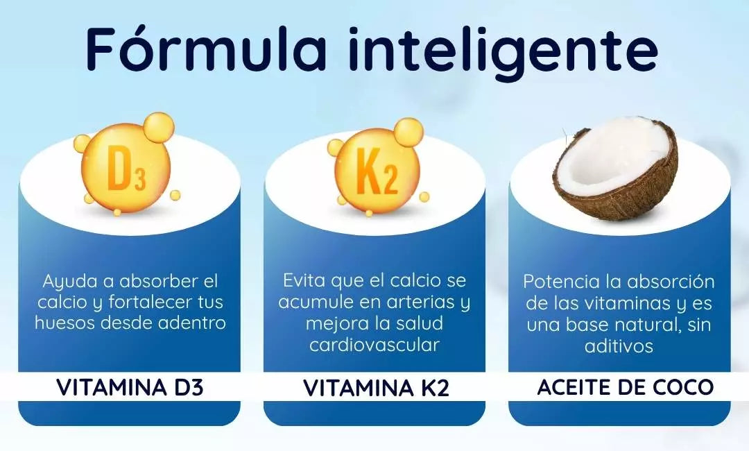Porque la vitamina D3 ayuda a absorber el calcio, pero sin K2 ese calcio puede acumularse en arterias o tejidos blandos. La K2 lo dirige hacia donde debe ir: tus huesos y dientes.
