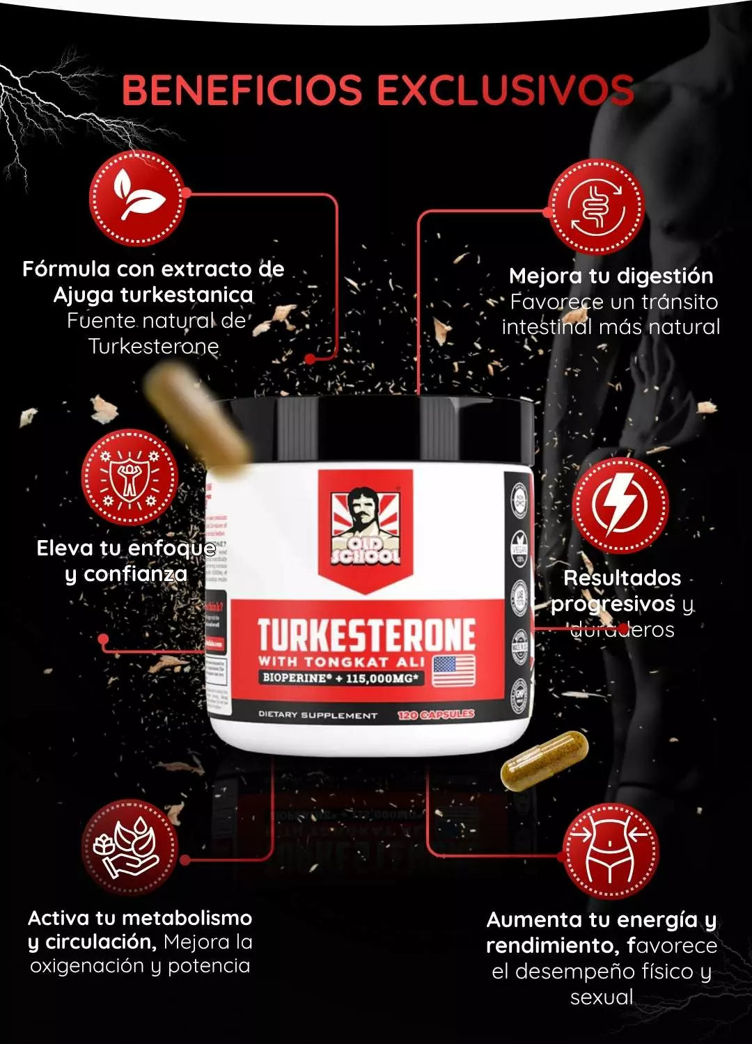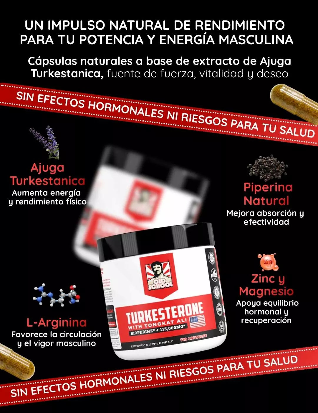 Sí — según la fórmula en la ficha, Turkesterone “activa la libido y da más energía”, lo que sugiere que mejora no solo el rendimiento físico sino también el deseo sexual.
